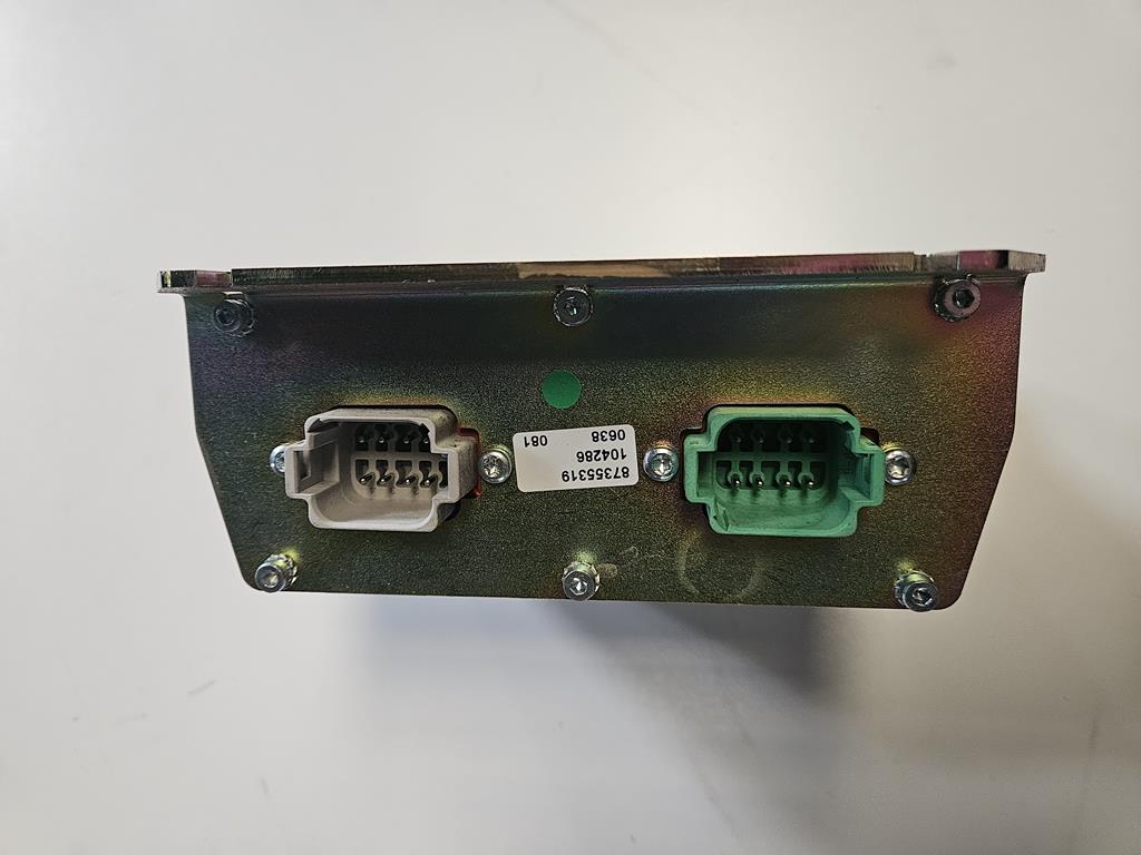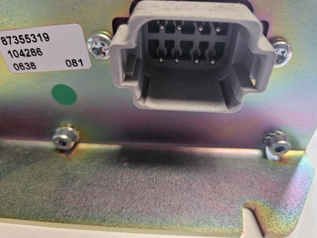 87355319 to moduł sterujący elektroniczny (ECU) produkowany przez firmę CNH Industrial, stosowany w maszynach rolniczych marki New Holland i Case IH